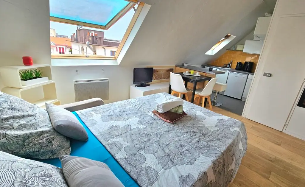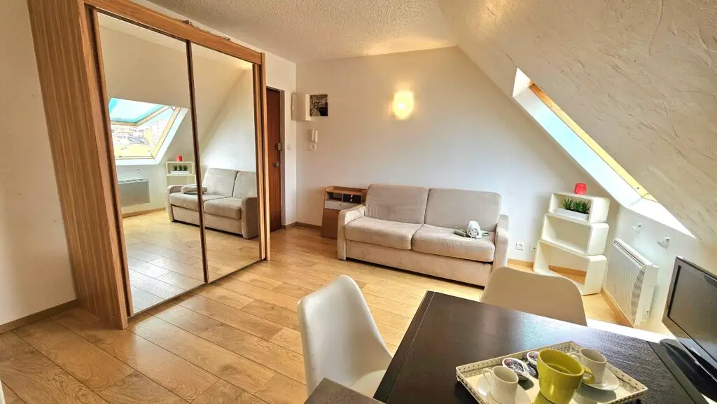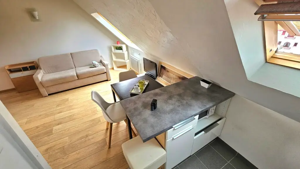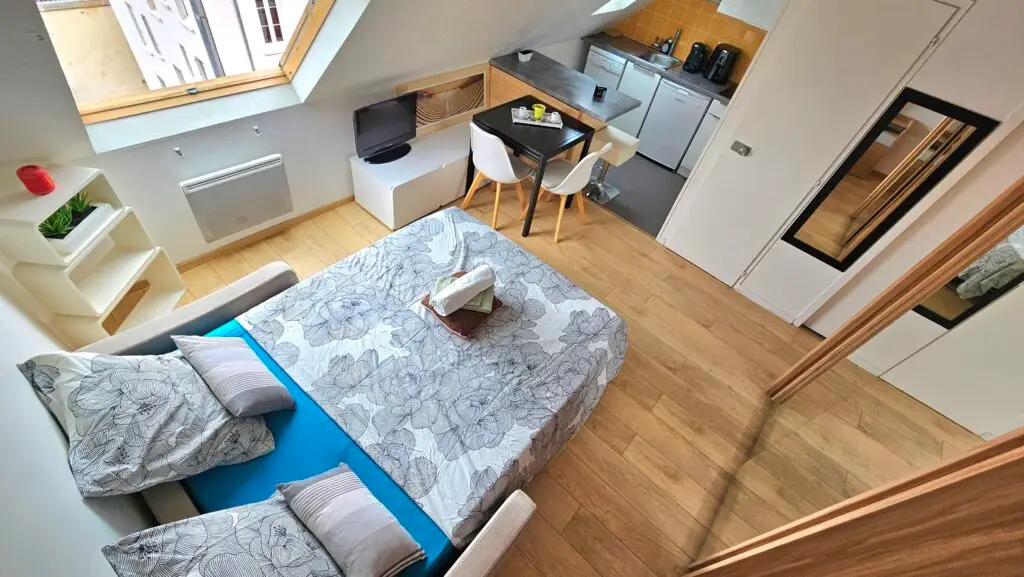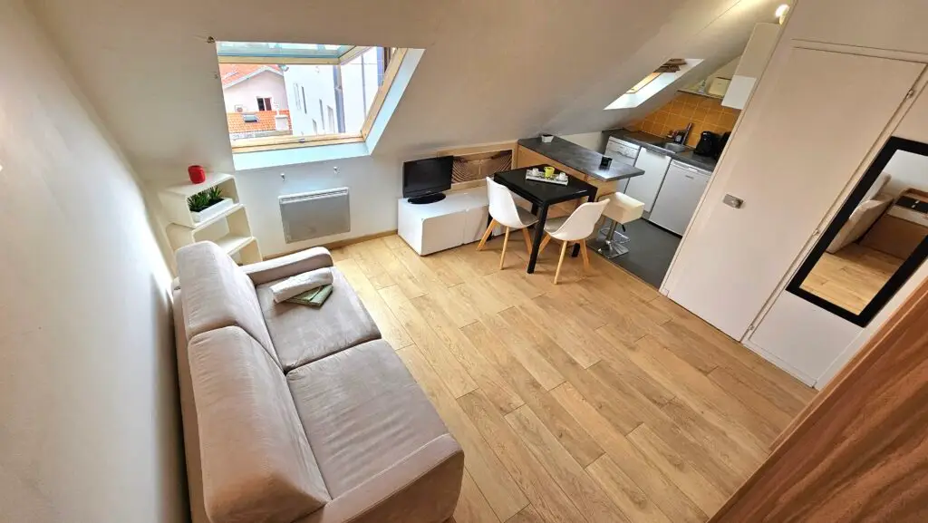 La résidence sécurisée comporte 6 étages offrant à ce studio une belle échappée sur les toits de Biarritz. Le canapé convertible offre 2 couchages avec un matelas confortable.